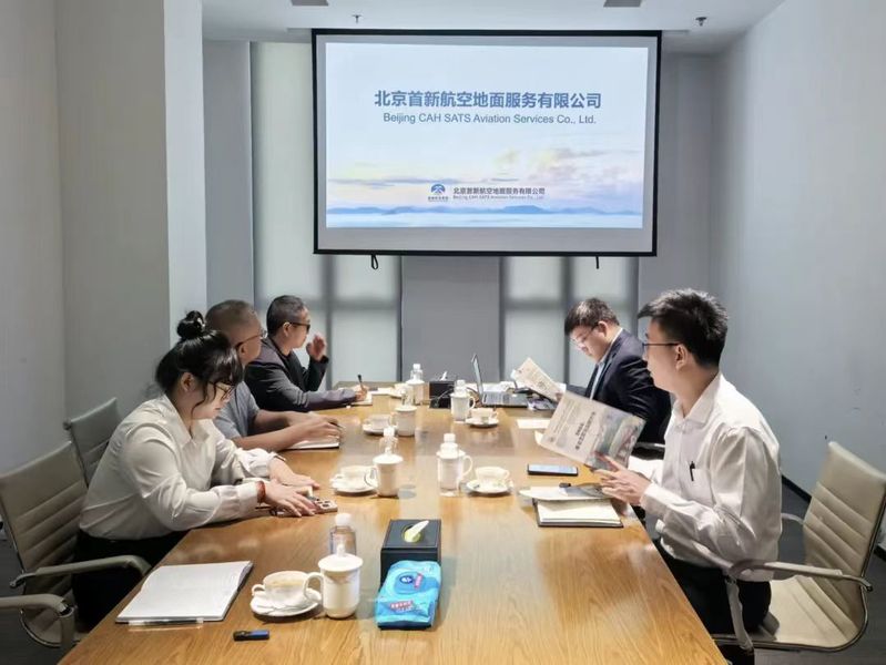 在首都机场集团北京首新航空地面服务有限公司,调研组与公司人事经理杨潇、负责培训业务主任孙佳豪进行座谈交流。公司方介绍了企业特色、岗位类型和要求,员工规模、用工方式。调研组介绍了学校人才特色和专业设置情况。校企双方就合作形式、未来加强联络互动、促进校企共同发展做了进一步探讨。