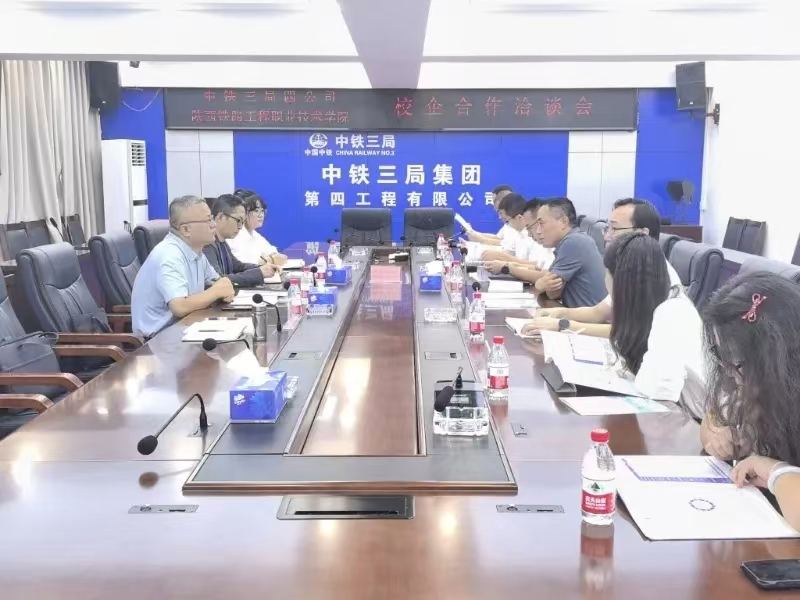 在中国中铁三局集团第四工程有限公司,调研组与公司总经济师、总工程师马锋,人力资源部、战略规划部、技术开发部、工管部、组织部等部门负责人进行座谈交流。张玉鹏向公司介绍了学校长期专注铁路行业人才培养取得的成绩,重点对学校为众多企业提供的测量、试验、造价、安全、盾构、大型机械操作技能培训服务进行了介绍,并对学校所拥有的职业技能等级认定资质做了说明。马锋介绍了公司当前的业务情况、人员队伍建设情况,交流了公司目前在员工培训方面的具体需求。双方就学校为企业做好量身定制培训服务、后续合作形式展开详细探讨,初步达成了合作意向。