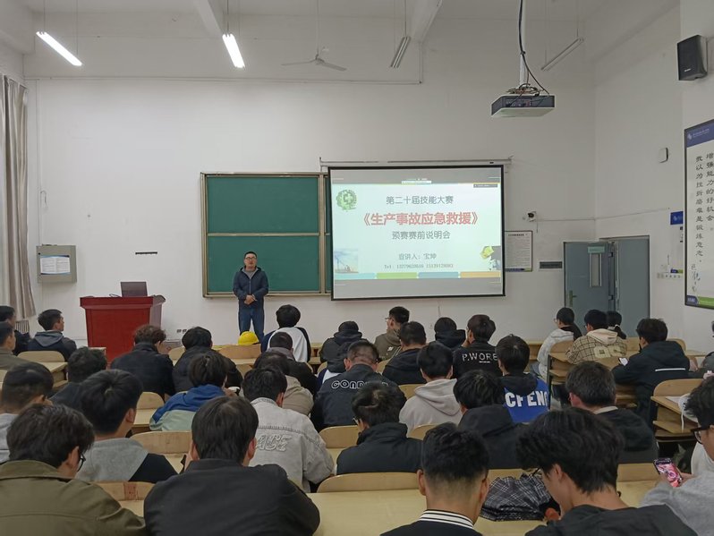 2025年10月17日下午16点,陕铁院第二十届技能大赛“捷安杯”生产事故应急救援赛项预赛赛前说明会在高新校区GB110召开。安全教研室宝坤老师对比赛时间、比赛地点、比赛形式、比赛项目及规则做了详细介绍和解读,并提醒学生相关注意事项。