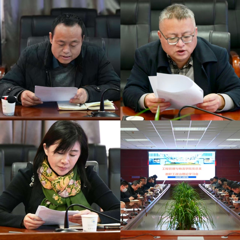 12月9日下午,工程管理与物流学院党总支在北三楼会议室召开教职工政治理论学习会,韩小卫校长出席并讲授党课,会议由党总支书记张玉鹏主持。