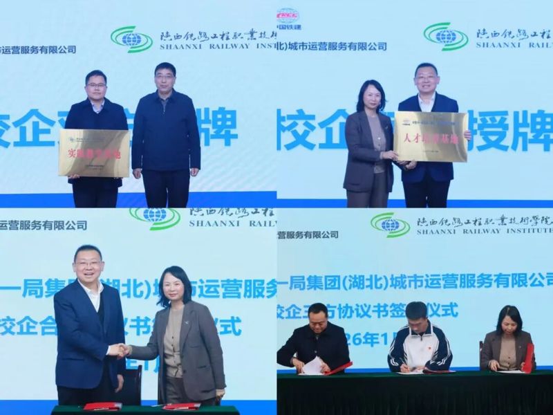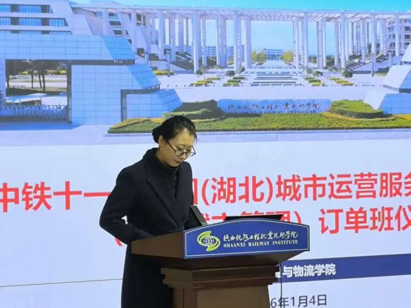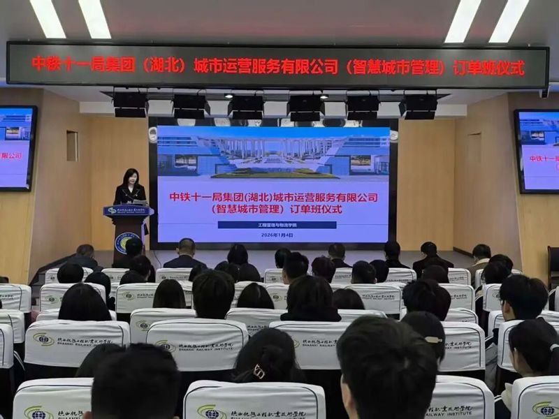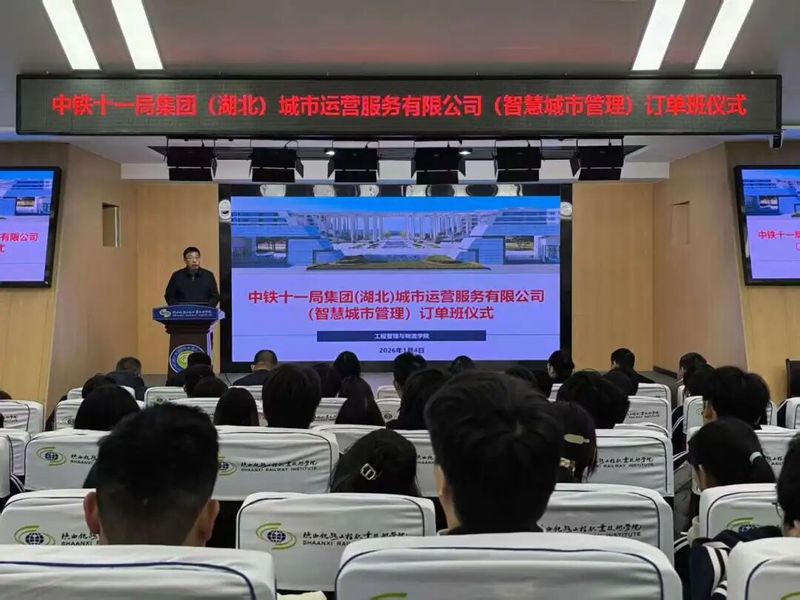 1月4日下午,陕西铁路工程职业技术学院与中铁十一局集团城市运营服务有限公司(智慧城市管理订单班)开班仪式在高新校区举行。学校校长韩小卫、副校长张学钢、教务处处长刘超群、校企合作处副处长苏昭,工程管理与物流学院院长叶超、党总支书记张玉鹏,中铁十一局城运公司党委书记诸葛祥菊、党委副书记兼工会主席及纪委书记陈安伍等一行4人出席仪式。仪式由工程管理与物流学院副院长杨小玉主持。