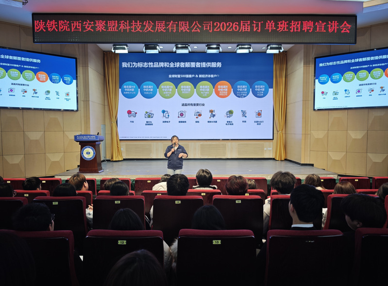 为加快推进2026届毕业生就业工作,深化校企协同订单育人机制,搭建校企对接、学生择业的优质平台,3月12日下午,工程管理与物流学院于高新校区顺利举办西安聚盟科技发展有限公司2026届订单班招聘宣讲会。就业处牛新平老师、管理学院党总支书记张玉鹏参加宣讲会。本次宣讲会吸引了学院及校内各二级学院众多2026届毕业生到场参与。
