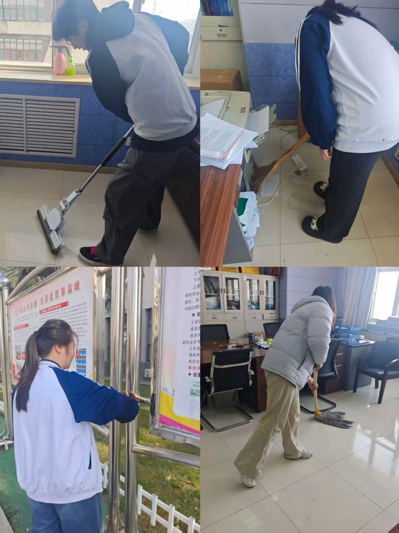 活动伊始,全体学生党员手持抹布、扫帚、垃圾钳等清洁工具,积极投身义务劳动。大家分工明确、协作有序,首先对校园内的宣传栏进行全面擦拭,清除积尘污渍,维护校园信息窗口的整洁美观。最后,部分党员前往教师办公楼,主动帮助打扫办公室卫生、整理桌椅,为老师营造更加舒适的办公环境。