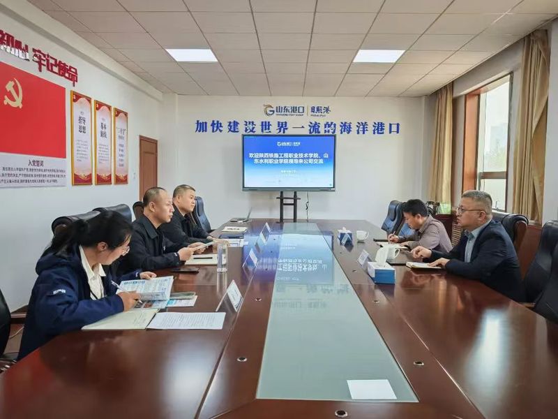 在日照港集团铁路运输公司,张玉鹏与公司副经理张喜书进行座谈,介绍了学校在铁路运输板块的专业和师资优势,就后续加强合作、开展定制化员工技能培训进行了深入交流。